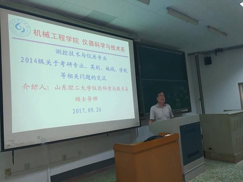测控系9月26号晚上7:00点在15#101教室,系主任李东兴老师召集本系全体硕士研究生导师,与测控技术与仪器专业2014级100人左右的拟考研同学,就如何考虑和准备推免、考研报考专业、报考硕士类别、报考公司地域、报考公司层次、考研心态等问题,进行了交流和沟通。