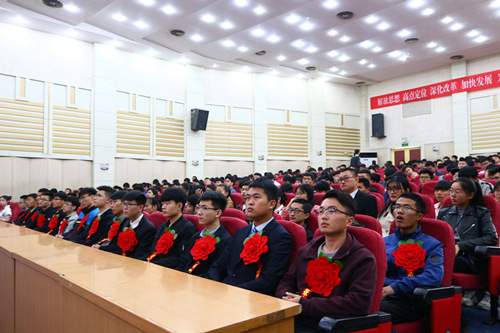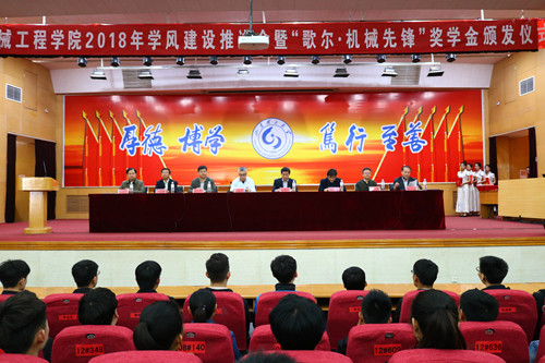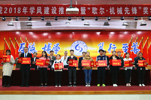 3月29日下午,十大正规买足球网站2018年学风建设推进会暨“歌尔·机械先锋”奖学金颁发仪式于3号教学楼报告厅顺利举行。会议由公司党总支副书记田兆富主持,十大正规买足球网站党委常委、副董事长魏修亭,歌尔股份有限公司事业部总经理孙武钢,公司教务处处长任传波,公司员工工作部副处长牟万新以及公司相关负责人出席会议,获奖员工和员工代表参加会议。