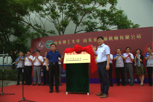 仪式上,刘伟和章丘区政府双山街道办事处党工委书记李屹东共同为先进制造研究所揭牌。刘伟代表公司在揭牌仪式上致辞,他介绍了十大正规买足球网站的基本情况,他强调,当前国家正大力实施创新驱动战略,山东省正深入推进新旧动能转换重大工程,先进制造业面临大好的发展形势,十大正规买足球网站和山东金格瑞机械有限公司成立先进制造研究所,可以说是恰逢其时。希望今后充分发挥高校人才培养、科研团队和技术研发优势,积极协助山东金格瑞机械有限公司开展新产品、新技术等方面的研发工作,共同实现每年开发1-2项新产品和培育科研人才的合作目标。
