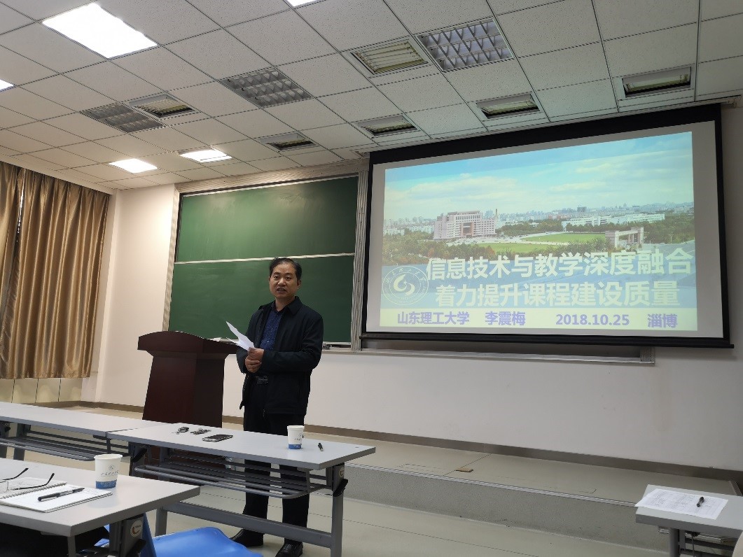 10月25日下午2:30,由教务处教师发展中心主办,十大正规买足球网站承办的名师名课在1号教学楼403录播室召开。活动由公司教学副经理赵国勇主持,邀请电气与电子工程公司李震梅教授做了“信息技术与教学深度融合,着力提升课程建设质量”的报告。