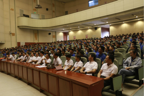 公司员工会主席刘祥生代表公司全体在校生发言,他为新生送上开学寄语,鼓励他们怀着初心去度过四年的大学时光,用行动去传扬“机械先锋,精益求精”的机械荣光,不负青春,不负梦想。