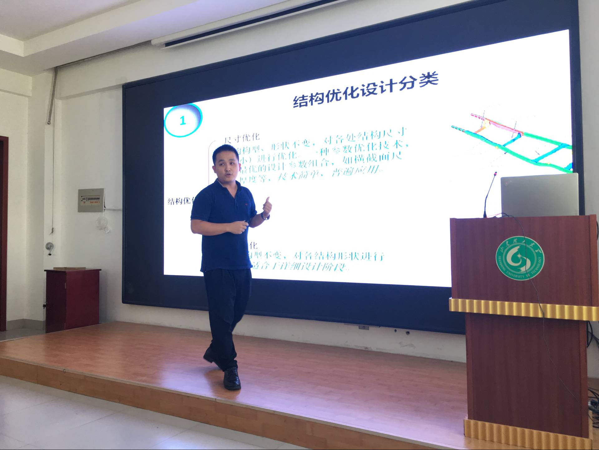 首先,王英俊博士对当前机械工程领域比较热门的机械优化设计方法进行了总体介绍;然后,王英俊博士重点对拓扑优化设计、离散变量优化设计等先进的设计理论与算法进行了详细讲解;最后,与会教师就结构优化设计与理论与王博士进行了交流研讨。