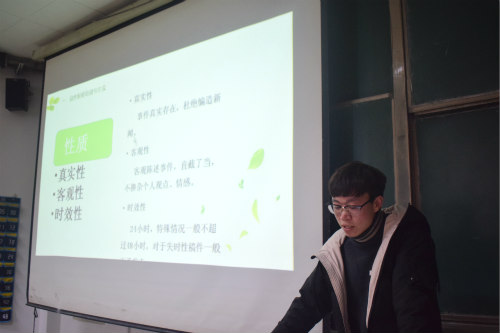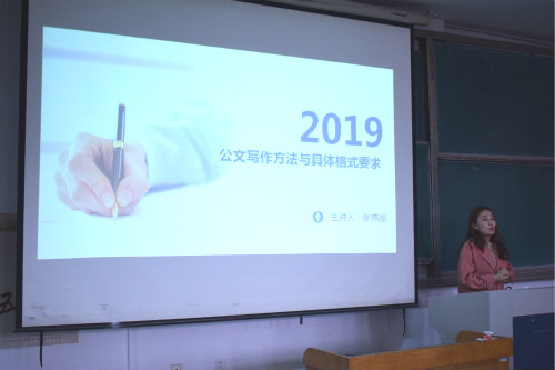 培训中,为员工干部暑假实践打下基础,辅导员张燕丽从通知类文件、活动项目策划书、活动总结汇报书、公文写作四类文体进行讲解。同时由新闻部部长金忠奇简单补充制作PPT常用制作技巧。辅导员朱峰说明社会实践选题组队方法。实践部部长孙志光与新闻中心主任韩为杰分别从社会实践的阶段安排与宣传报道进行培训,详细分享其宝贵经验。