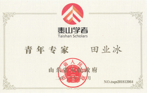 山东省人民政府办公厅发布《关于公布泰山学者攀登计划专家和泰山学者青年专家名单的通知》,公司田业冰教授入选泰山学者青年专家。