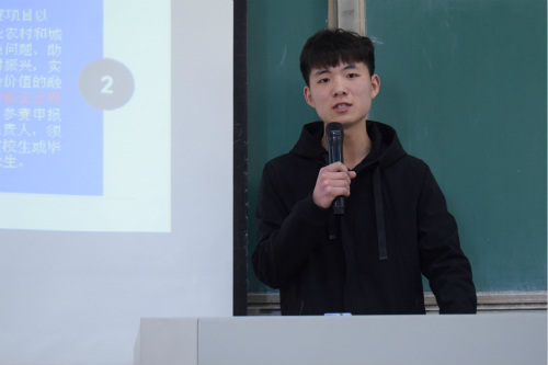 活动伊始,张思状以“敢为人先放飞青春梦,勇立潮头建功新时代”为主旨介绍活动目的,他提到,“互联网+”是培养老员工创新创业精神,探索素质教育新途径,搭建成果展示新平台综合性比赛。随后,他以支付宝、淘宝、百合网等由“互联网+”与传统相结合而成新型方式为例,讲述其概念及对人们生活的影响。宣讲中,他引用李克强总理对创新创业型比赛重要批示介绍此次比赛背景,以时间为节点介绍比赛发展历程。他提到,“互联网+”发展趋势只增不减,大量“互联网+”模式爆发以及传统企业“破与立”,比赛通过限制组队条件与项目元素使大赛顺利开展。其中项目元素分为现代农业、信息技术服务、社会服务等五点,并于主赛道下设多种组队形式。大赛总体安排遵循“五个更”原则,即更全面、更国际、更中国、更教育、更创新。最后,他指出三点注意事项,一、参赛项目不只限于“互联网+”项目,鼓励各类创新创业项目参加;二、团队报名填写上的位次将作为后期证书上的人员位次,位次代表贡献率,不接受任意更改,三、高校教师科技成果转化的参赛项目不能参加创意组,但可参加其他组别。