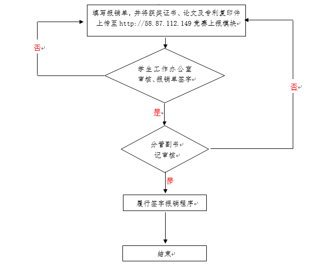 3.经费报销。竞赛结束后,负责人将获奖证书、论文及专利复印件交至员工工作办公室审核后履行报销程序。学科竞赛类,由竞赛负责老师统一汇总,凭“年度计划、经费预算”统一报销。另外,不在《机械工程公司创新活动竞赛项目》里的项目,经公司审核后,由员工自行报销。报销流程见附件2。