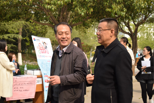 集团人才招聘处领导来到招聘现场,对用人单位来公司选聘毕业生表示诚挚欢迎,对毕业生求职就业给予现场指导,对为招聘会成功举办无私奉献的志愿者同学给予高度评价,对机械、交通、农工公司在创新就业模式上做出的探索表示充分肯定。
