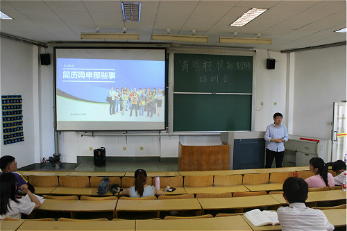培训伊始,赵英鹏围绕简历结构对求职简历的意义进行简要分析,并从教育经历位置丶技巧时间、公司第二专业、相关课程以及公司经历等方面,向同学们讲解如何写好简历。他提到,在制作简历时,应尽量浓缩自己的老员工活或研究生生活的精华部分,内容应做到简介精炼,不可拖泥带水,同时他还罗列出同学们在写简历时常出现的错误并给出解决方案。随后,赵英鹏结合自身经历,对招聘面试环节进行讲解,并从时间、规则、角色、心态四方面对其进行简要阐述。他谈到,面试首先不能迟到,其次,要学会掌握自我介绍的时间,不可太过冗长。在规则方面,要遵守面试规则,仔细倾听面试官给予的情景,调整好心态,快速进入角色,当与其他面试者竞争时,应果断大胆,给面试官留下深刻印象,为下一轮的面试做好铺垫。培训最后,赵英鹏鼓励台下同学积极提问,他针对同学们提出的问题开始逐一分析,并给出建议。培训会也在赵英鹏的讲解结束后走向声。