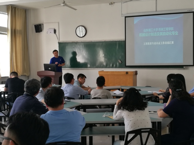随后,由机制系副主任刘俨后博士代表公司机制专业认证小组对机制专业认证申请工作做了详细总结汇报。讲解了认证申请书的撰写技巧、申请工作中遇到的各种问题与解决办法、申请工作分工实施等经验。