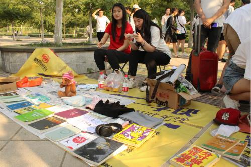 活动准备阶段,工作人员对现场进行管理、布置。他们设置围栏,布置签到处,张贴设计新颖的宣传条幅,粘贴摊位号,设计道路指引标识,调试音响设备,准备热场音乐,准备垃圾桶,保持现场卫生秩序。活动伊始,卖家先进行签到,随后于工作人员引领下陆续入场,在专属摊位上摆上琳琅满目的商品,同时为商品明码标价,等候买家到来。