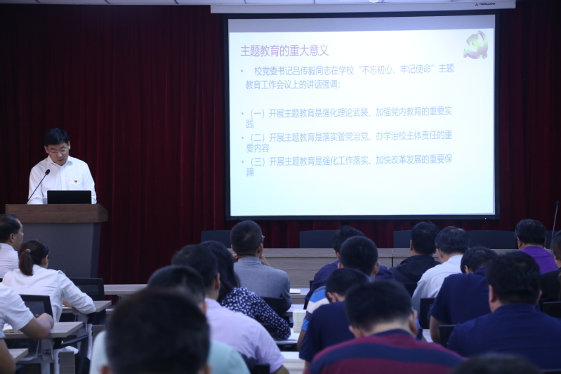 刘伟强调,扎实开展“不忘初心、牢记使命”主题教育,是各基层党组织的首要政治任务。公司党总支全面落实主体责任,严格落实校党委书记吕传毅“三个强化”的要求,切实保证主题教育工作质量。根据公司党委工作要求,公司成立“不忘初心、牢记使命”主题教育领导小组,负责统筹协调、推进落实公司的主题教育。公司班子成员履行“一岗双责”,加强对所属党支部的督促指导工作。公司把开展主题教育情况作为党支部书记抓党建工作述职评议的重要内容。要充分发挥公司内外媒体作用,为主题教育营造良好氛围。扎扎实实把主题教育组织好、开展好,加快建设有特色、高水平、国内知名的教学研究型大学,以优异成绩向新中国成立70周年献礼!
