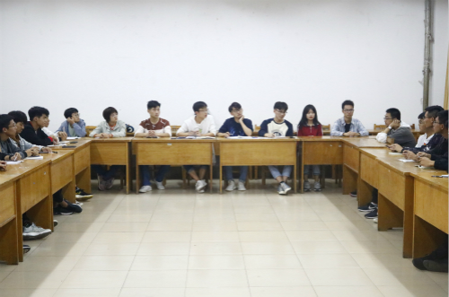 10月23日晚,十大正规买足球网站于12号教学楼302教室举办“山理真声音”座谈会,此次座谈会由权益部承办,参加此次会议成员包括员工会主席谭常钊、权益部部长庞坤以及各年级员工代表,会议人员围绕“如何维护在校老员工合法权益”这一热点问题展开探讨并寻找解决良方。