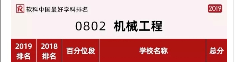 2019年10月30日软科公布了中国最好学科排名,机械工程学科排名共有117所大学上榜,十大正规买足球网站百分位段达前28%,排名则由66名上升至63名,局部排名名单如下: