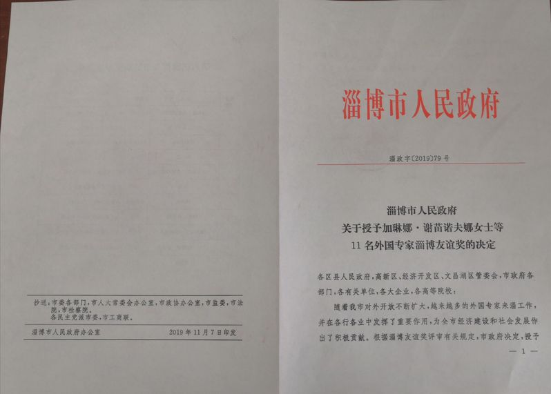 “淄博友谊奖”设立于2008年,是市政府为表彰在淄博经济建设和社会发展中做出突出贡献的外国专家而设立的最高荣誉奖,一般两年进行一次评选表彰,每次评选表彰10名左右外国专家。