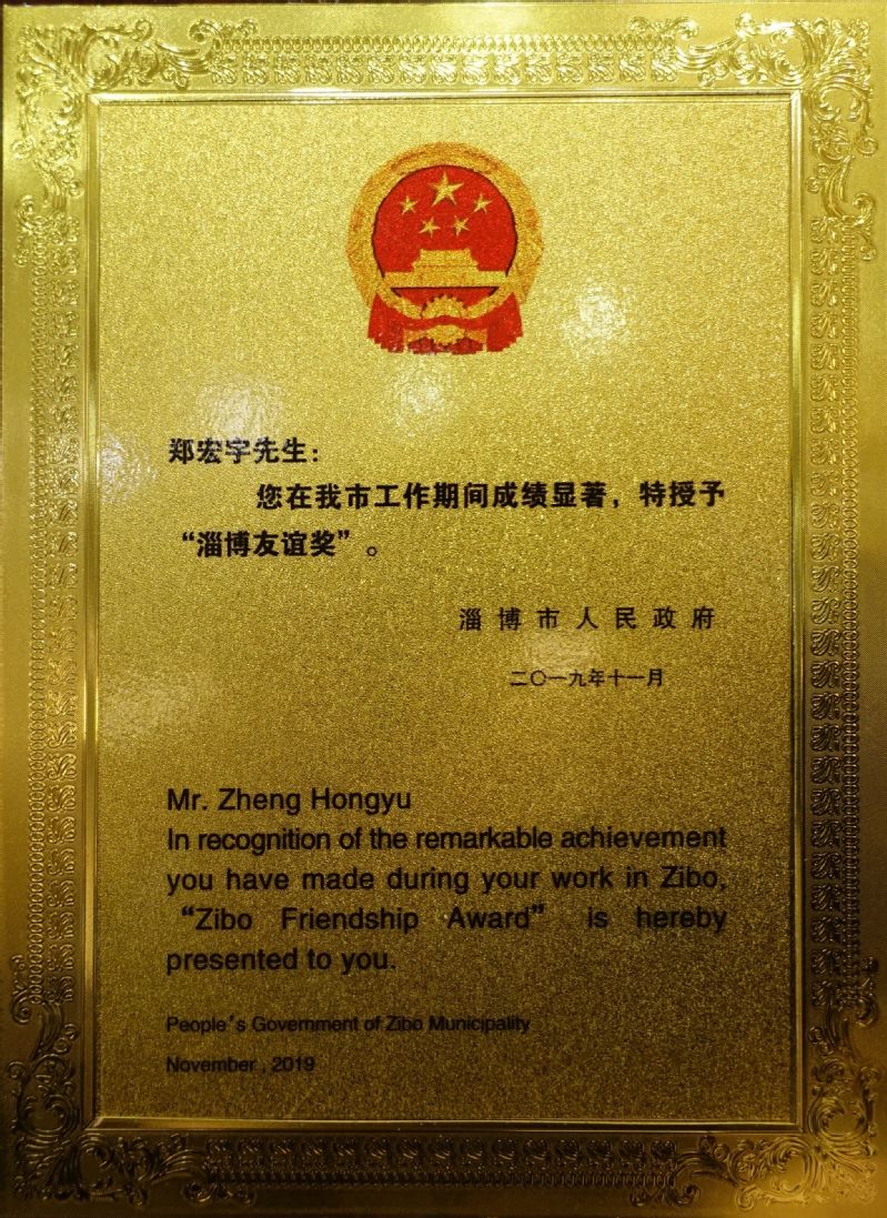 11月8日,第六届“淄博友谊奖”获奖名单揭晓,十大正规买足球网站郑宏宇教授获此殊荣。