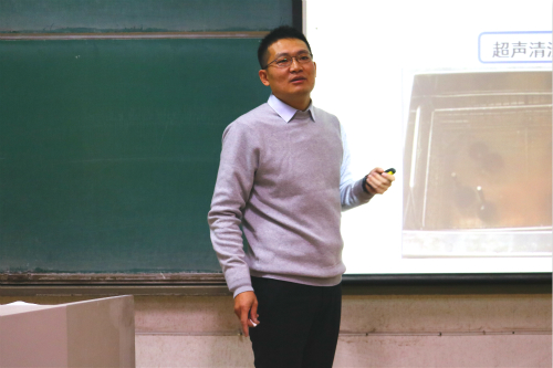 任建华进行特种加工技术的讲解,主要围绕超声加工的原理及应用展开介绍,详细介绍超声加工运行机理、工艺特点、超声加工的设备及组成部分,授课内容透彻详细且注意与员工互动。