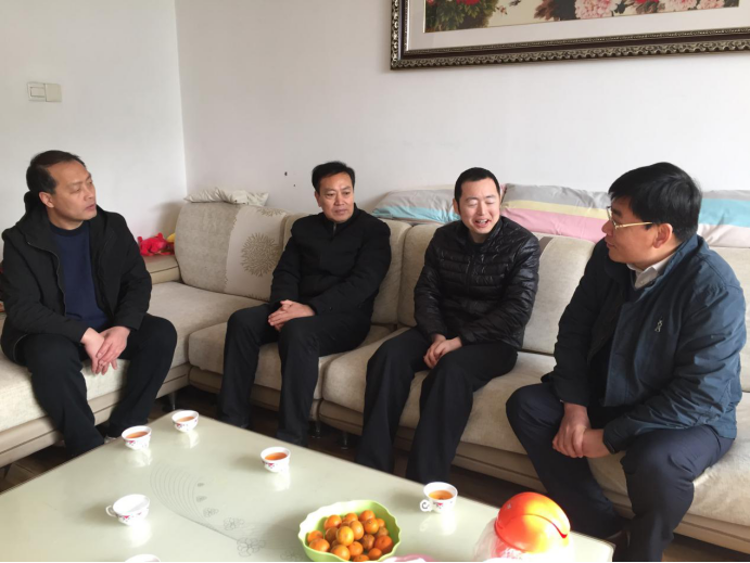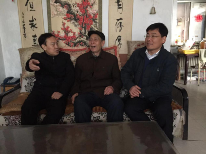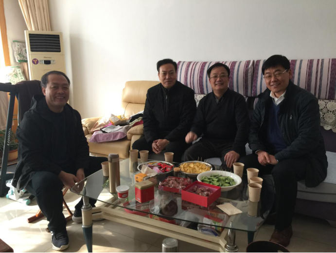 刘伟、王效岳、田兆富、刁军来到退休教师党员胡维信、祝玉寅、韩进宏、马荣庆家中,向退休教师们带去春节祝福,代表全院师生关切询问了老教师们的身体和家庭生活等情况,介绍了公司的发展近况、2019年取得的成绩和2020年发展规划,希望老教师们对公司发展提出宝贵建议,为促进公司发展和一流团队建设发挥余热、贡献力量。