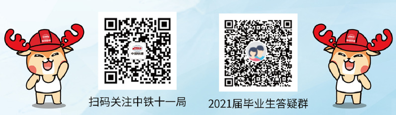 单位详情、招聘岗位及专业可关注“中铁十一局集团有限公司人力资源部微信公众号”进行了解,意向毕业生可通过加入“2021届毕业生答疑群”进行咨询。