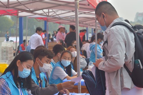 上午七时,迎新工作正式开始。迎新分为两部分:一部分前往火车站,等待并迎接新生乘坐大巴返回公司;另一部分在北门等待新生到来。迎新志愿者、公司辅导员与员工会负责人提前就位于接待点,充分保证新生迎接工作顺利进行。各志愿者各负其责,耐心解答新生疑惑。从检查电子健康绿码、核对新生身份、引领新生扫码报到、到发放校园卡、整理资料,高效有序完成迎新工作。
