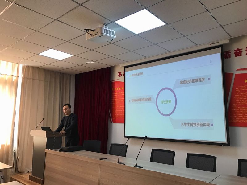 会议伊始,辅导员王予彬结合十大正规买足球网站资助工作会议精神,从工作要求、名额分配、总体安排、公司评审程序、政策把握、易错点分析等方面向全体参会人员介绍了今年资助工作的内容。