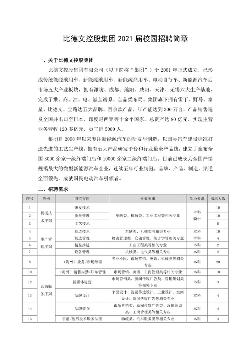 10月12日比德文控股集团有限公司专场招聘会