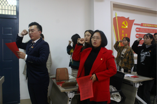 本期党课班主任刘冰就此期培训班的课程安排、培训方式及学习纪律要求进行讲解,她指出要严格遵守学习纪律。随后预备党员代表官亚琳发言,他的发言表达了学员参加培训的热情及认真态度。公司党总支副书记高存福作动员讲话,他讲到开展预备党员培训的原因:一是深入学习贯彻习近平新时代中国特色社会主义思想,贯彻落实《2019-2023年全国党员教育培训工作规划》的工作要求;二是中共预备党员中还存在一些不容忽视的问题,需要通过专题培训进一步凝聚共识,汇聚力量。三是开展预备党员的培训工作,是推进公司党建工作的重要举措。高存福对参加本期培训的预备党员提出几点要求:第一,坚定理想信念,增强政治意识、大局意识、核心意识、看齐意识,努力做“四讲四有” 的合格党员。第二,加强学习,带动良好学风校风,发挥先锋模范作用。 第三,希望大家自觉遵守学习纪律,做适应时代发展的合格党员。最后,由官亚琳领誓,全体预备党员重温入党誓词。