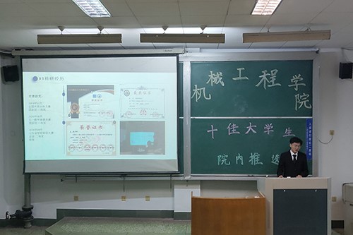 随后,胡成勇就获得奖项、论文、社会实践方面作介绍,同与会人员明确自身未来规划,阐述成为大学教授的梦想。