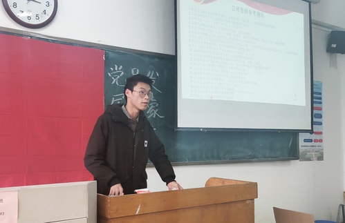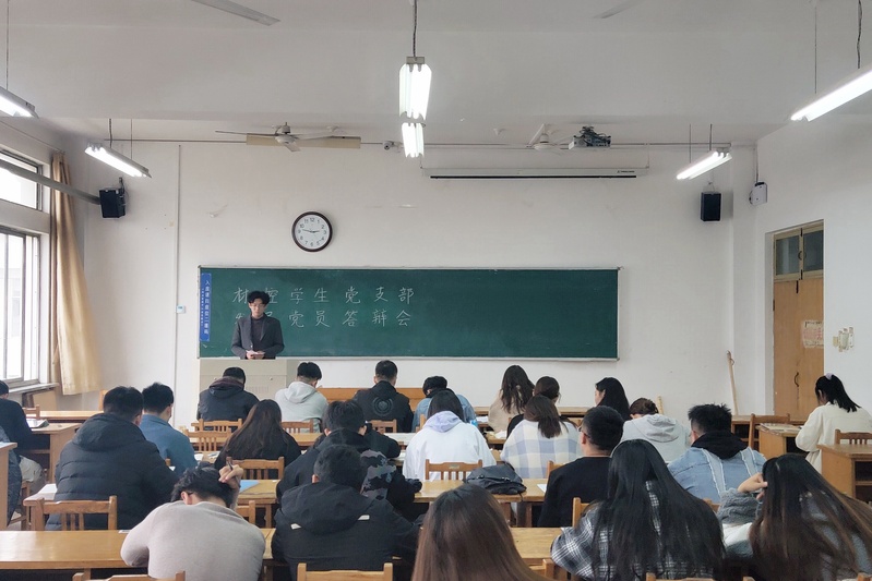 答辩伊始,官亚琳上台为全体与会人员介绍此次党员答辩会具体形式,他提到此次答辩包括主观题与客观题;主观题由正式党员直接进行提问,客观题由在场入党积极分子现场抽签决定。各位入党积极分子依次按照抽签顺序上台进行答辩,全体成员从思想素养、入党动机、学习与模范带头作用等方面介绍了个人基本情况,从思想,学习和生活三大方面做出汇报,表达出坚定的入党信念与向党组织靠拢的决心。随后,演讲者在台上主动开展自我评价,指出自身不足并对未来进行展望。