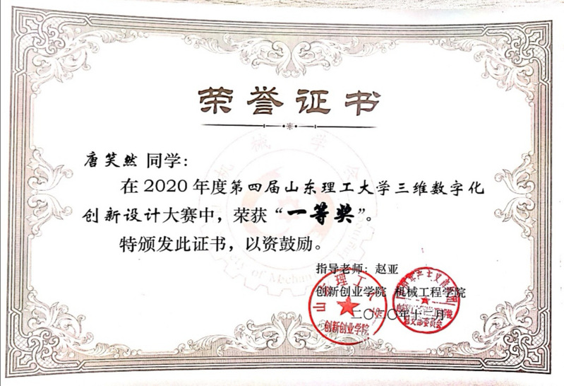 公司在国赛斩获诸多佳绩。李溍哲获得尺规一等奖,屈云山获尺规二等奖,施东凌,于冲等人7人获得尺规三等奖。尚将、何东浩等5人获得建模一等奖;亓军、王晓东等5人获得建模二等奖:孙一栋等3人获得建模三等奖; 尚将等3人获得基础知识一等奖,臧经纬等4人获得基础知识二等奖;姚杰等3人获得基础知识三等将;十大正规买足球网站队荣获机械类团体赛一等奖和3D打印团体赛三等奖,十大正规买足球网站队荣获3D打印团体赛一等奖和机械类团体赛二等奖。在第四届三维数字化创新设计大赛方面,低年级组中有唐笑然等7人荣获一等奖,15人荣获二等奖,26人荣获三等奖,团队赛中暴龙小分队和R7荣获团队赛一等奖,2个团队荣获团队二等奖,4个团队荣获团队三等奖;高年级组中有韩宗松、卢允荣获一等奖,赵玉祥、于深获得二等奖,李晓彤等3人获得三等奖。
