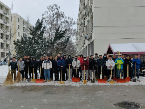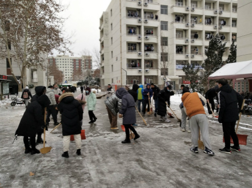 29日下午,清扫工作有序展开。全体党员不畏严寒,坚守岗位,手持铁锨扫把等劳动工具,齐心协力,团结协作,对宿舍楼下片区积雪进行有效清理。室外温度低至零下十摄氏度,但党员的热情与团结使这个冬日格外温暖。经过近一个小时的奋战,清扫工作顺利结束。