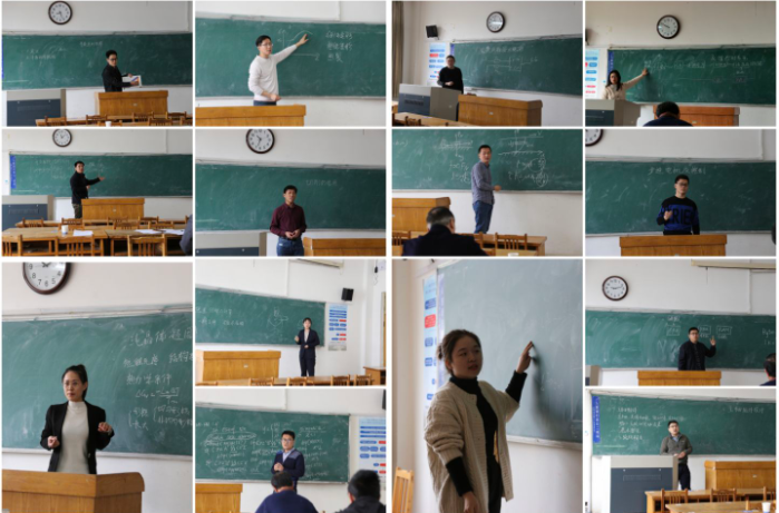 试讲过程中,各位教师经过精心准备,仪表得体,教态自然。大部分教师讲授时语言流畅、条理清晰,教学重难点突出、板书设计合理,教学内容理论联系实际,并能恰当地选择教学方法和手段,反映出大学教师应具有的良好基本素养和能力。