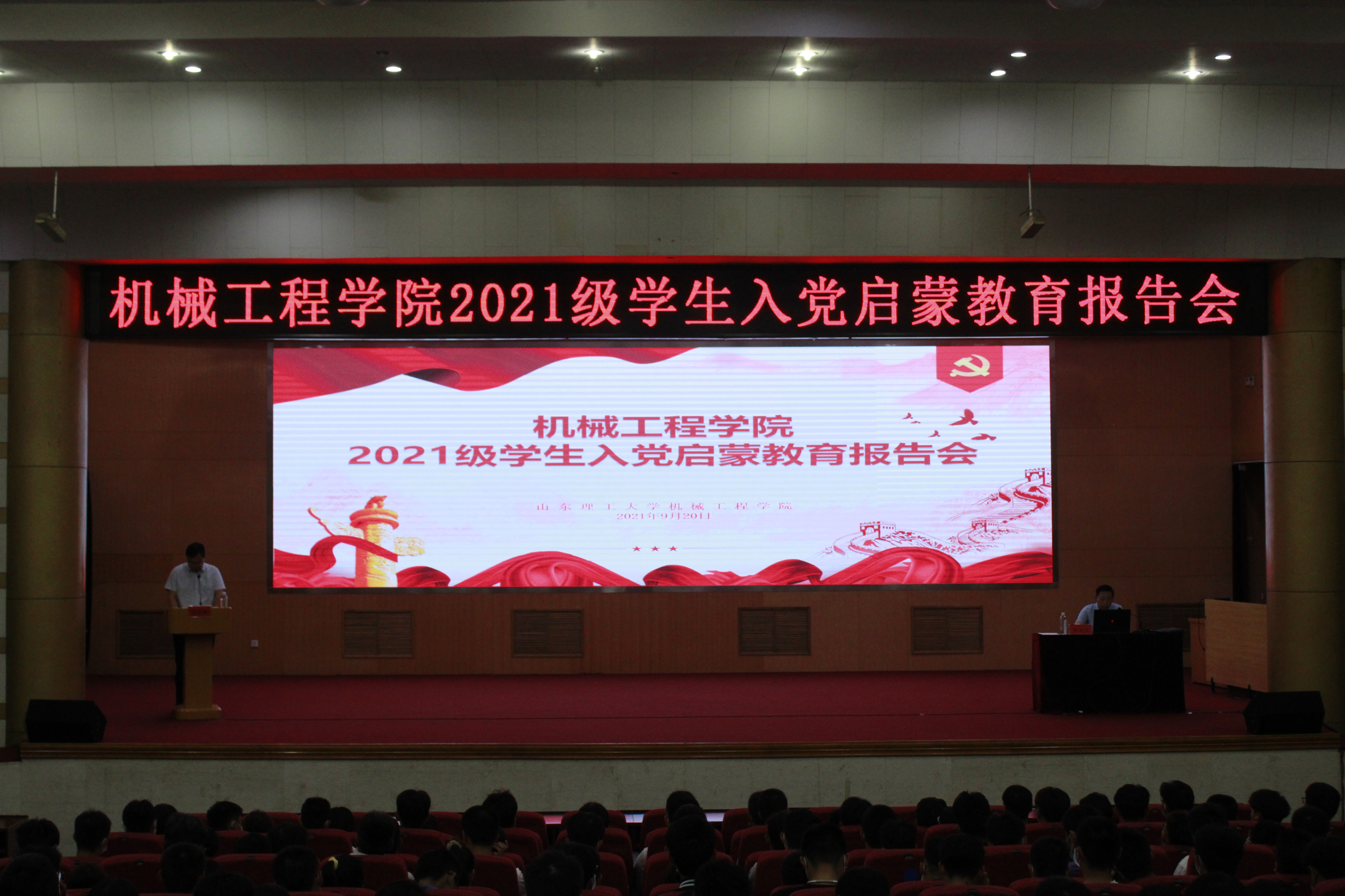9月20日,十大正规买足球网站在三号教学楼报告厅举办2021级新生入党启蒙教育,公司党委书记徐启达主讲,党委副书记高存福主持,全体2021级新生参加,活动分上午与下午两场进行。