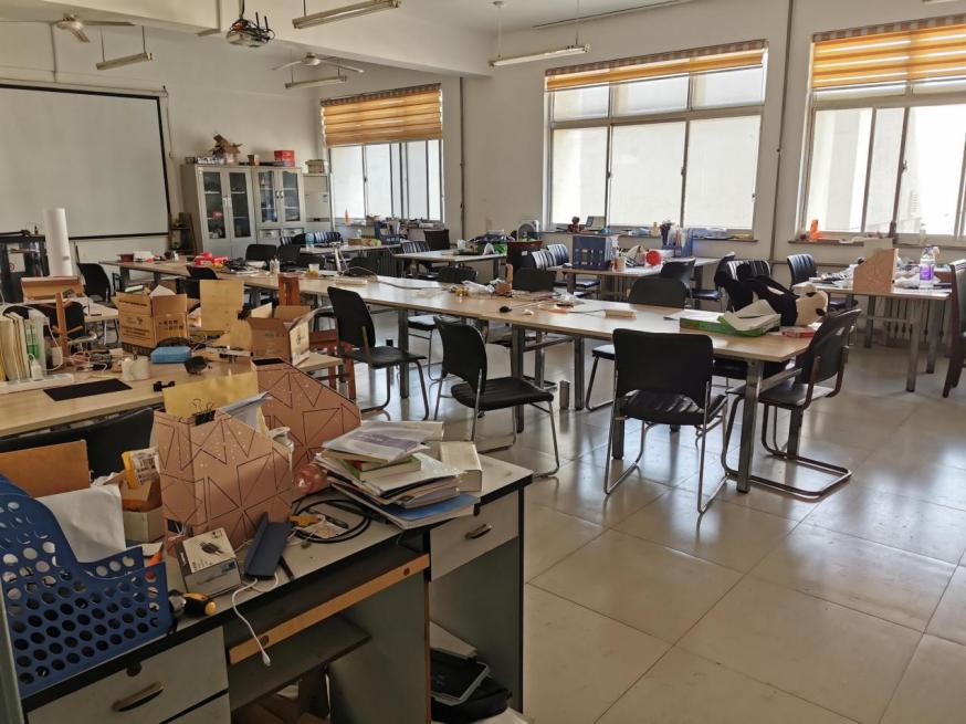 2. 少量研究生工作室存在快递包装纸盒堵塞实验室逃生门现象。