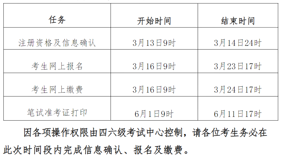 网上资格确认时间为3月13日9时--3月14日24时,请各位考生在此时间点前尽快登陆http://cet-bm.neea.edu.cn网站,点击“注册新用户”,用电子邮箱注册通行证账号,已经有通行证账号的可以直接使用。电子邮箱即为个人账号,建议考生使用个人常用邮箱,注册完成后进入“报名和准考证打印”界面完成笔试和口试科目的报名及缴费,考生可通过该邮箱收到缴费成功通知。因牵扯考生缴费及确认等问题,通行证注册后最好及时验证邮箱,以免输错邮箱。