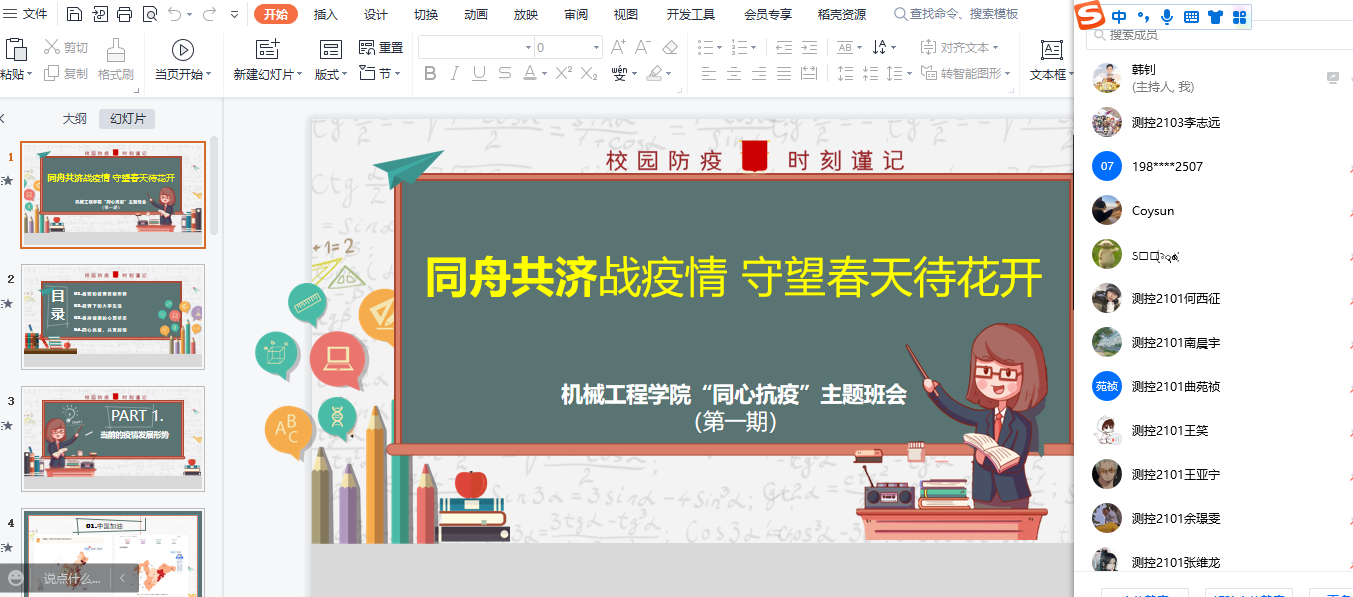 为进一步落实疫情防控相关要求,增强员工疫情防控意识,保证每位员工的身心健康,十大正规买足球网站组织召开“同舟共济战疫情,守望春天待花开”线上疫情防控主题班会,班会由各辅导员主持。