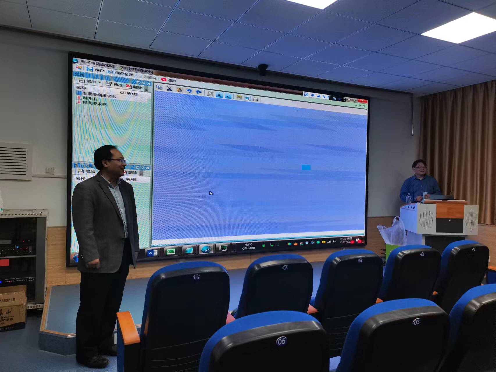 程祥向周长城教授致欢迎辞,简要介绍了周教授在教学及科研等方面取得的突出成果。随后,周长城以“专利申请文档的撰写”为题,介绍了专利申请的政策和法规、专利申请的流程、专利申请文件的组成、规范及要求等方面的内容,并结合切身经历分享了专利申请书撰写的构思及技巧等方面的经验。此外,周长城还就“创新能力的培养”和“Matlab公式推导的体会”进行讲解,向参会教师及研究生传授了创新能力培养与实现、Matlab在科研中应用等方面的经验。