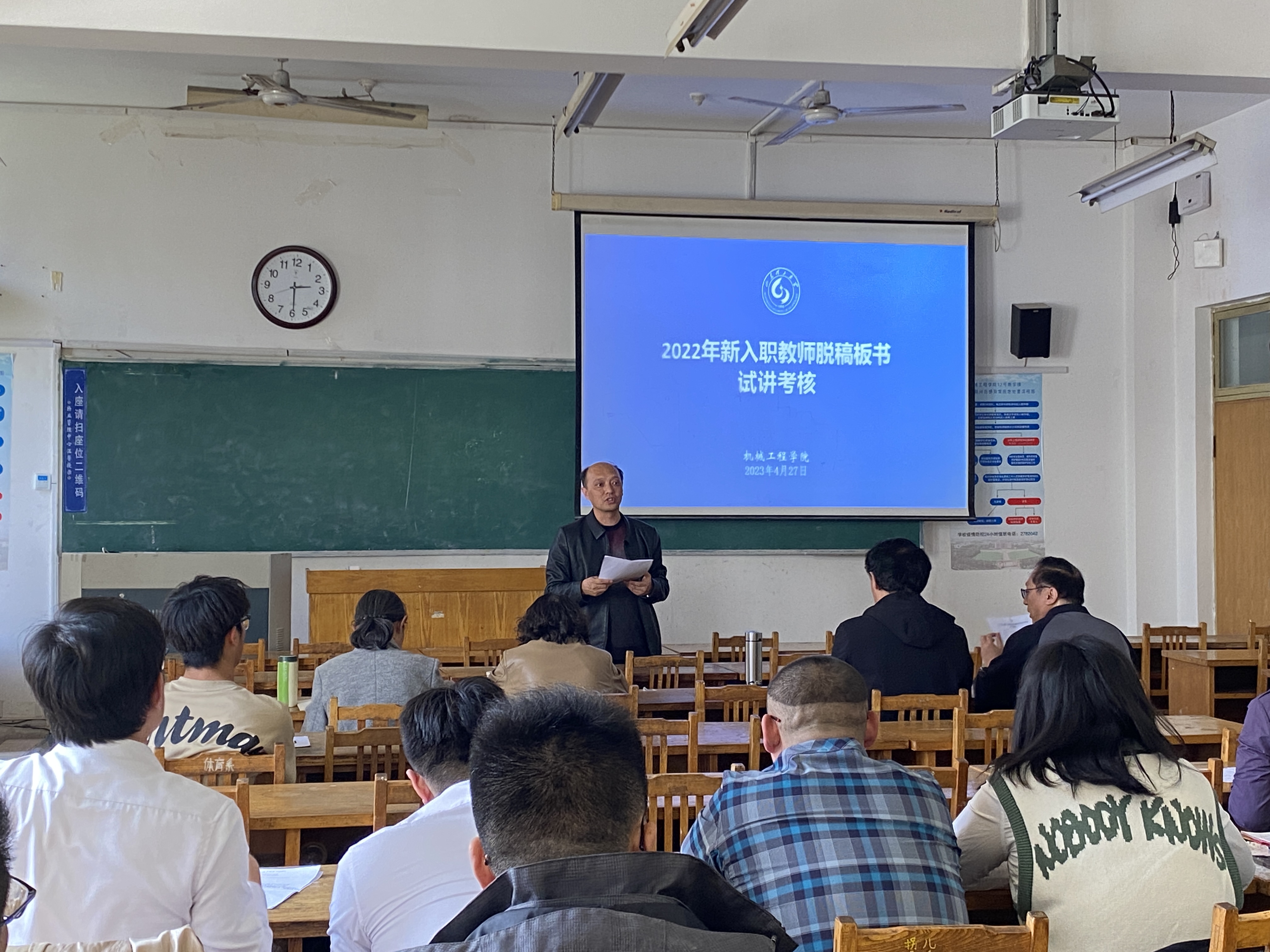 为了提高新入职教师的教学基本技能和教学水平,促使他们尽快适应高校教学工作,4月27日下午,十大正规买足球网站在12#413开展2022年新入职教师(简称新教师)脱稿板书试讲考核活动,共有11名教师参加了本次考核。