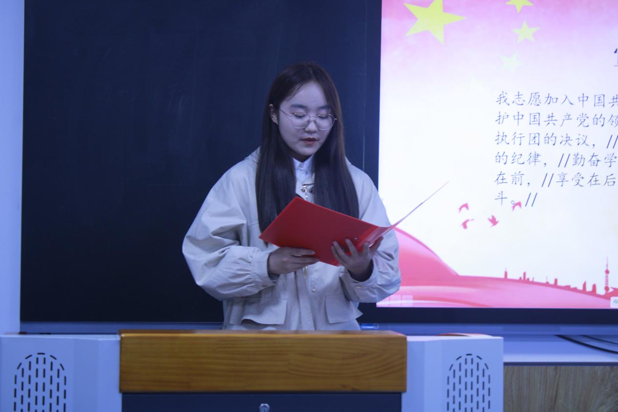 新团员代表程钰讲话,她表示自己将继承和发扬共青团的优良传统,以团员的标准严格要求自己,刻苦学习,努力奋斗,不断地提高思想觉悟,用实际行动践行入团誓言,争做新时代优秀团员。