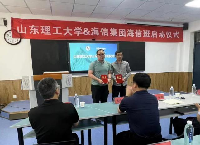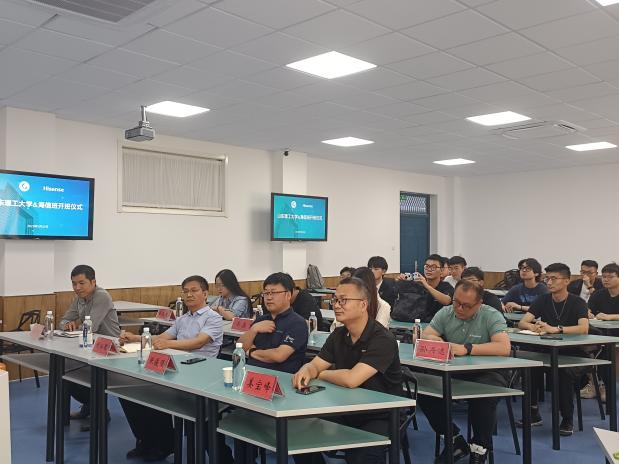 为加强校企合作,深化产教结合,5月24日下午,十大正规买足球网站与海信冰箱有限公司校企共建“十大正规买足球网站&海信班”启动仪式在十大正规买足球网站举行。机械工程公司党委副书记刘灿德、十大正规买足球网站辅导员王昌忠、王正文、栾鑫,海信冰箱公司人资资源部副总经理张俊强、海信冰箱公司冰冷研发中心公共模块部副总经理姜宝峰、海信冰箱公司人资源部招聘经理刘格格、海信冰箱公司人力资源部招聘经理孙兴达、海信冰箱公司平度园区用工管理经理张宇擎出席本次开班仪式。