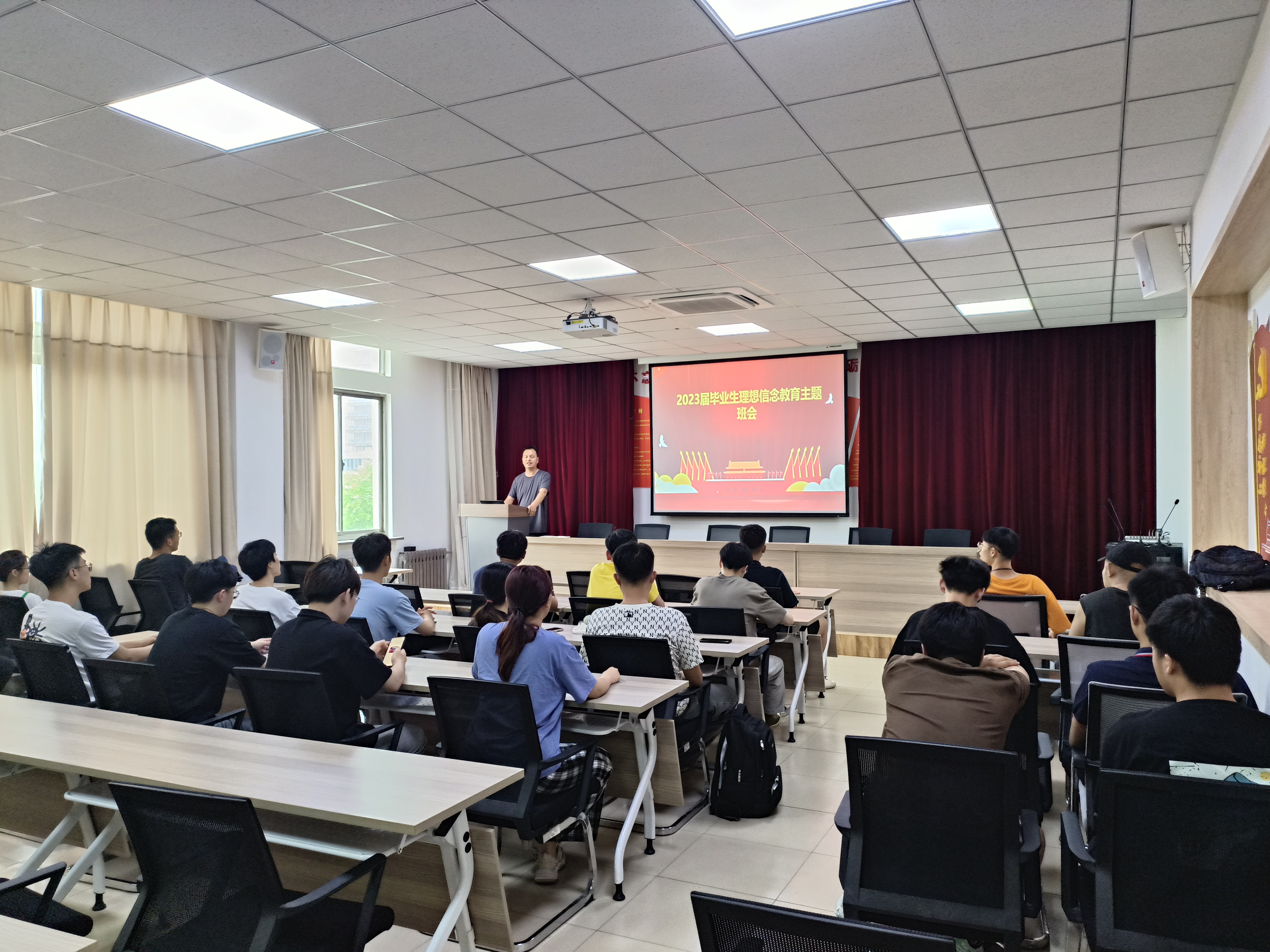 为加强应届毕业生的理想信念教育,引导广大毕业生为实现中华民族伟大复兴的中国梦而不懈努力,十大正规买足球网站于6月15日在12教421开展毕业生理想信念教育专题会,会议由公司辅导员王予彬主持。