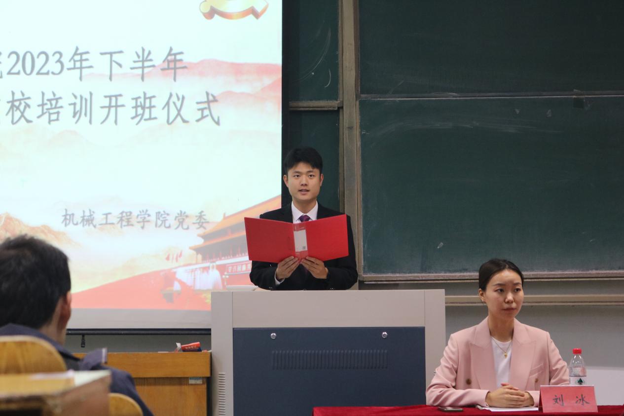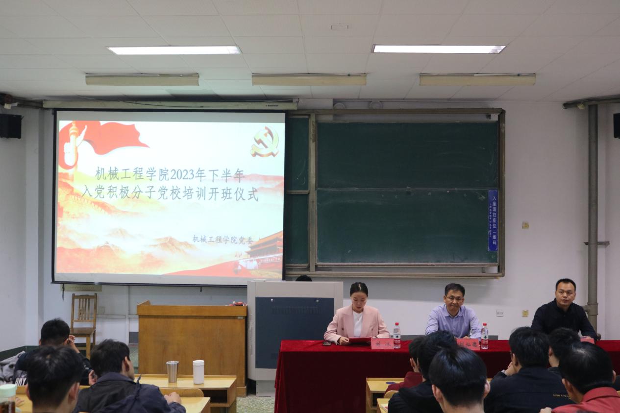 为加强入党积极分子队伍建设,提高入党积极分子对党的认识,端正入党动机。10月19日下午,2023下半年入党积极分子培训开班仪式在15号教学楼101教室举行。公司党委副书记刘灿德,机制员工第一党支部书记、辅导员王予彬,全体入党积极分子参加此次开班仪式。会议由培训班班主任刘冰主持。