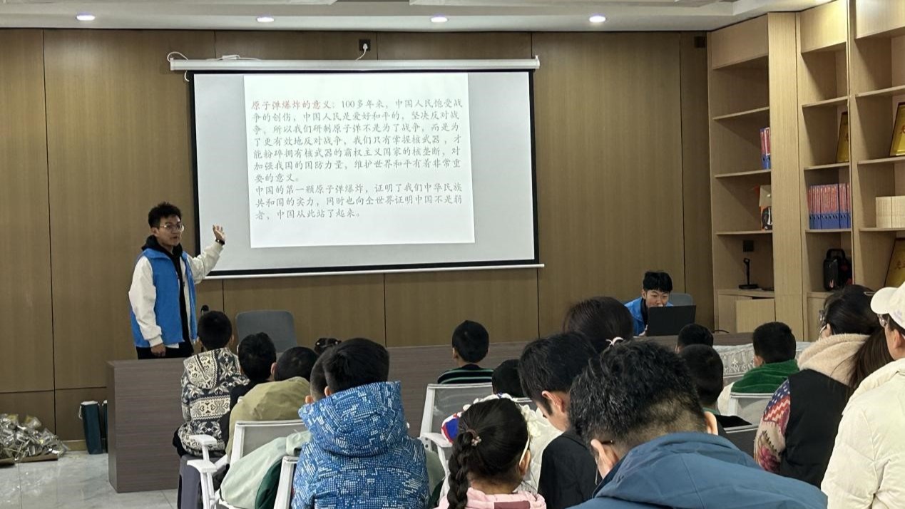 宣讲活动在一片热烈的掌声中拉开了序幕。实践团的同学们首先通过一段精彩的视频,向孩子们展示了“两弹一星”的辉煌历程。视频中,科学家们克服重重困难,以坚定的信念和无私的奉献,为我国国防科技事业做出了巨大贡献。孩子们看得津津有味,不时发出惊叹和掌声。