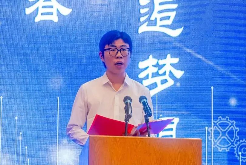 在校生代表机制2103班臧宏鑫同学发言。他代表在校生向学长学姐表示感谢,同时祝愿学长学姐在未来的道路上一切顺利,他表示将继续发扬机械学子的优秀品质,为公司的发展和繁荣贡献自己的智慧和力量。