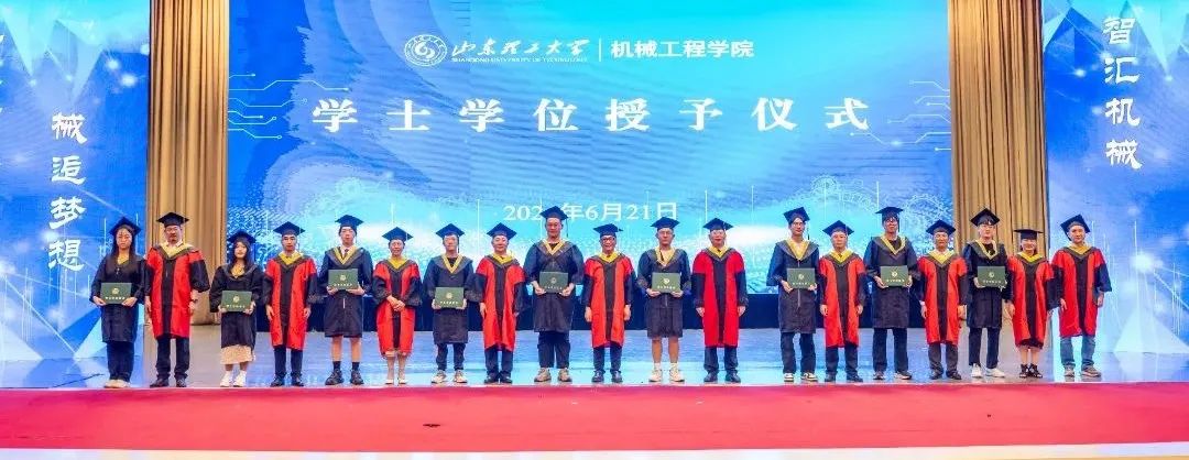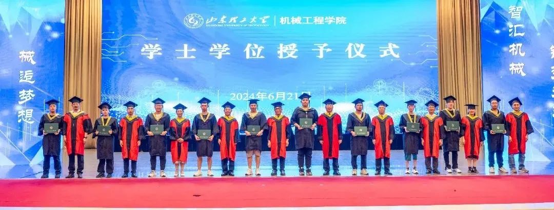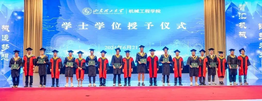 10位教师为2024届全体毕业生正冠拨苏,授予学位证书并合影留念。