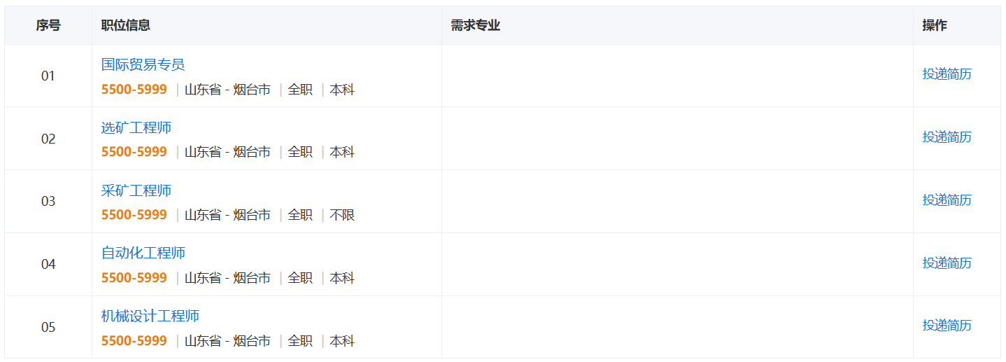 要求:男,35周岁以内,本科及其以上学历,地测采选类、机械类、国贸类、英语、俄语、印尼语等语言类相关专业,具有良好的外语沟通能力;可接受优秀应届生。