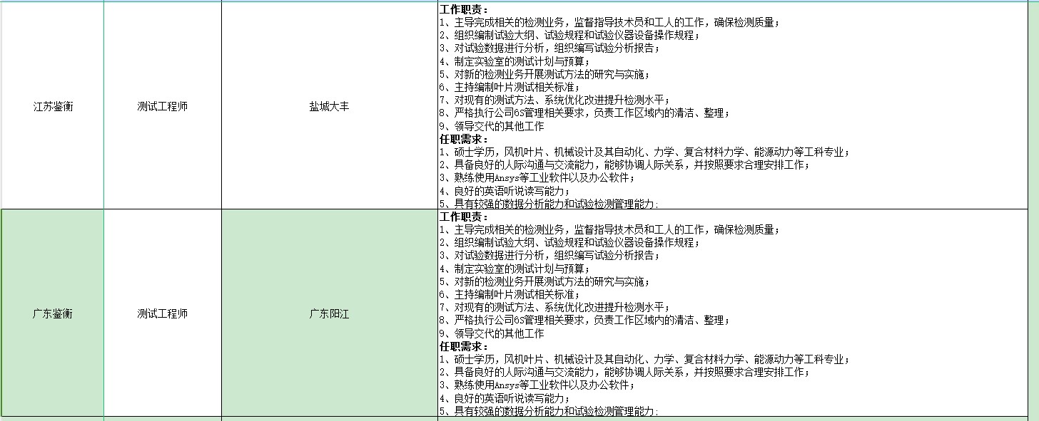 工作地点:北京、盐城大丰、广东阳江、全国各检测中心点