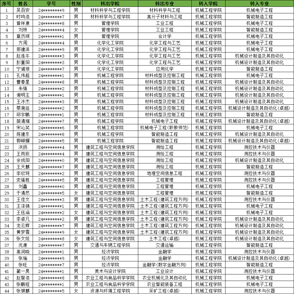 按公司要求,根据公司及公司转专业办法及安排,请下表中的同学明天(2025年3月3日)8:30-14:00到西校区12教435-1室找仇老师签字确认信息,请同学们相互转告。