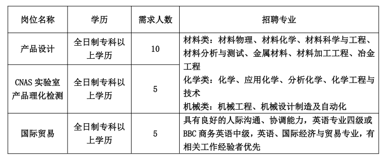 山东瑞泰新材料科技有限公司主要从事特种功能合金及汽车、航空、航天、舰船、核工业用高温合金的研发和生产。公司研发生产的绝缘耐磨抗氧化特种合金材料,填补国内空白,达到国际同类产品的领先水平,被认定为“国家重点新产品”。公司拥有国家认可委认可的“CNAS 实验室”,以及“山东省院士工作站”、“山东省工程实验室”、“山东省认定企业技术中心”等研发平台。获批“国家高新技术企业”、“国家专精特新小巨人企业”、“山东省瞪羚企业”、“山东省民营企业创新 100 强”、“淄博市创新发展 50 强”,市场前景好,福利待遇、工资稳定。现因公司扩大生产规模,需要招聘以下人员
