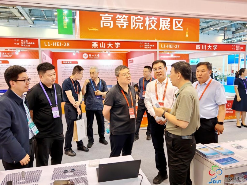 展会上,通过“实物展示+成果推介”的方式,两位教授展示了超精密加工技术、新材料等领域的创新研究成果,吸引了诸多参展人员咨询,并进行了深入交流。期间,山东省工业和信息化厅副厅长焉杰等领导一行亲临展位指导工作,要求高校教授把握本次交流机会,加强深度融合与协作,赋能科技成果转化和产业升级。