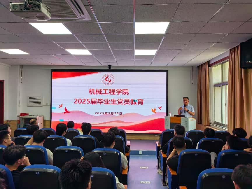 公司党委副书记刘灿德以“永葆初心担使命,砥砺前行谱新篇”为主题发表讲话,为即将奔赴人生新征程的2025届毕业生党员送上殷切嘱托,激励大家凝聚奋进力量,在未来的工作和学习中彰显党员担当,践行入党誓言。最后他对毕业生党员提出三点要求。一是要以“先锋表率”之姿践行使命,从维护宿舍文明环境到助力就业精准帮扶,从凝聚班级向心力到投身社会基层建设,须以躬身力行诠释共产党员的先进性。二是要以“机械人”的严谨务实筑牢思想防线,在科技创新、乡村振兴等领域涵养浩然正气,永葆赤子之心。三是要结合公司“厚德、博学、笃行、至善”的校训,将个人理想融入民族复兴的伟业中,以匠心致初心,以奋斗赴使命,在全面建设社会主义现代化国家的新征程中书写青春华章。